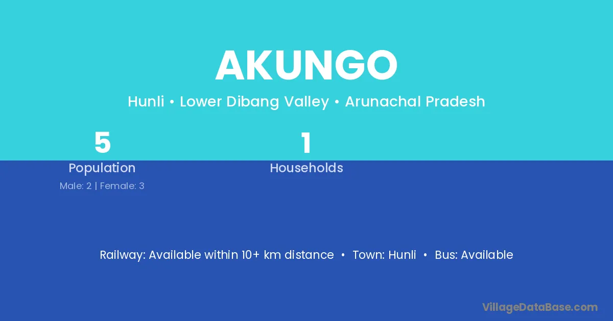 Akungo village has a total population of 5 people, of which 2 are males and 3 are females.