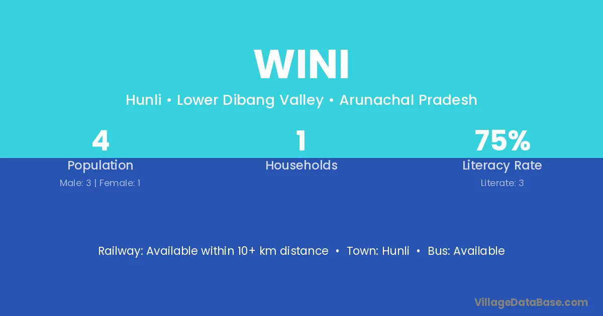 Wini village has a total population of 4 people, of which 3 are males and 1 are females.