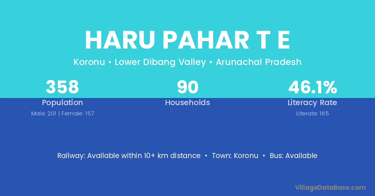 Haru Pahar T E village has a total population of 358 people, of which 201 are males and 157 are females.