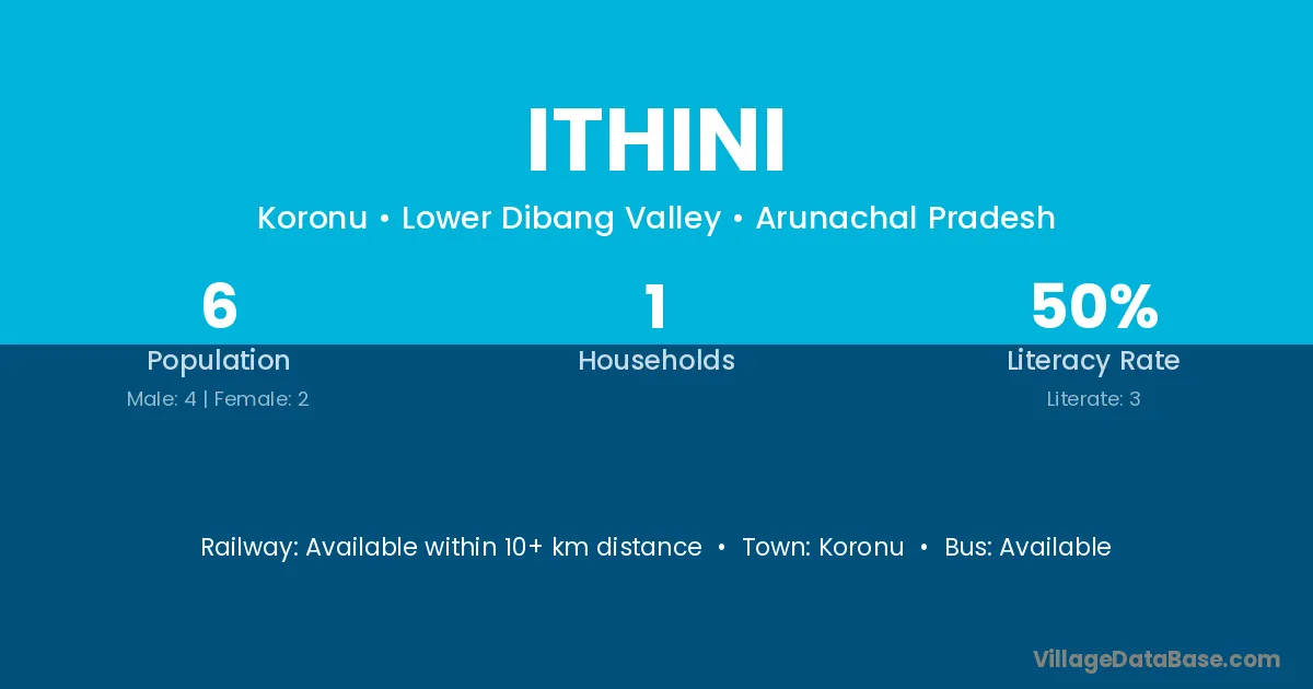 Ithini village has a total population of 6 people, of which 4 are males and 2 are females.