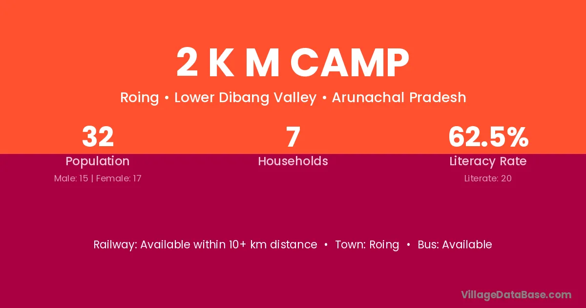 2 K M Camp village is located in the Roing Circle of the Lower Dibang Valley district in Arunachal Pradesh .