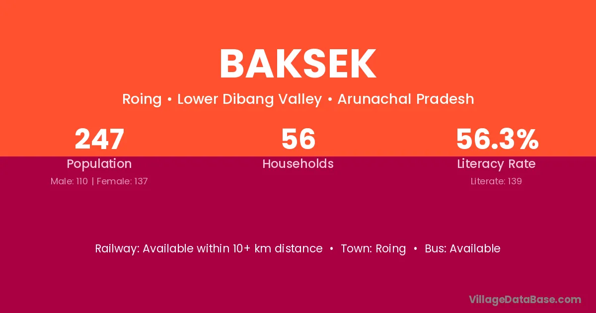Baksek village has a total population of 247 people, of which 110 are males and 137 are females.