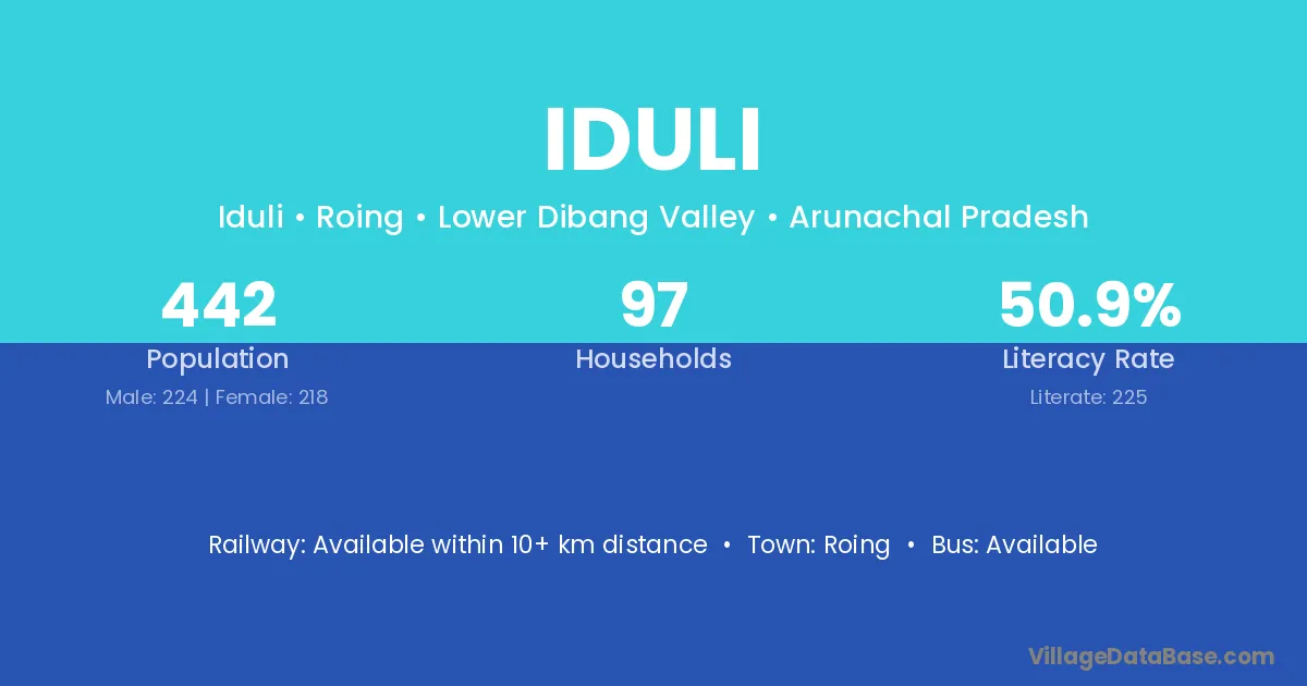 Iduli village has a total population of 442 people, of which 224 are males and 218 are females.