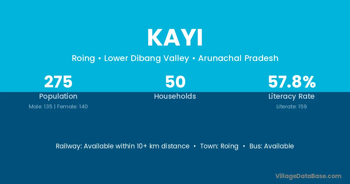 Kayi village has a total population of 275 people, of which 135 are males and 140 are females.
