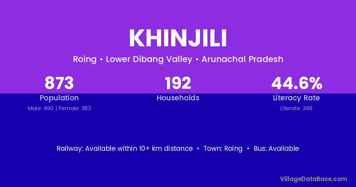 Roing is the nearest town to Khinjili village for major economic activities