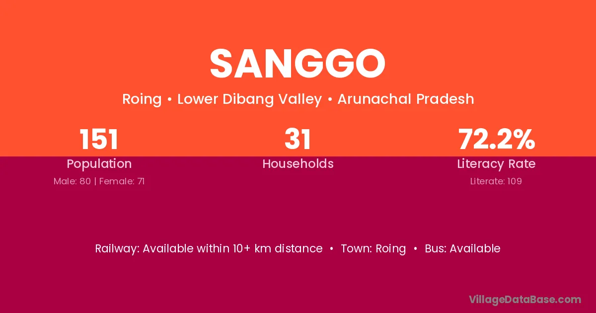 Sanggo village has a total population of 151 people, of which 80 are males and 71 are females.