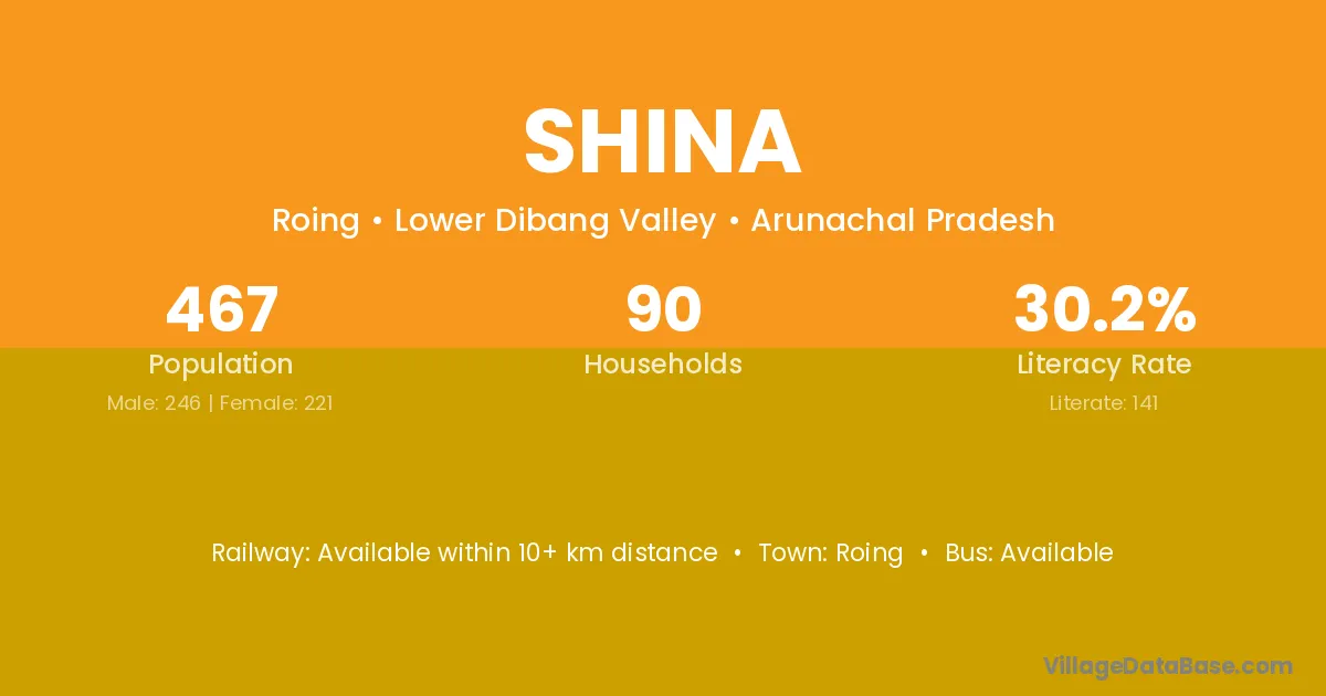Shina village has a total population of 467 people, of which 246 are males and 221 are females.