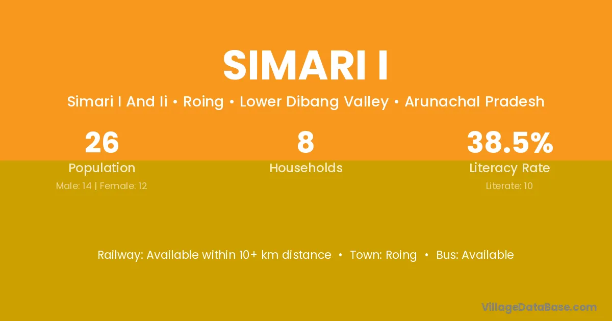 The literacy rate of Simari I village is 38.46%. Male literacy stands at 42.86% and female literacy at 33.33%.