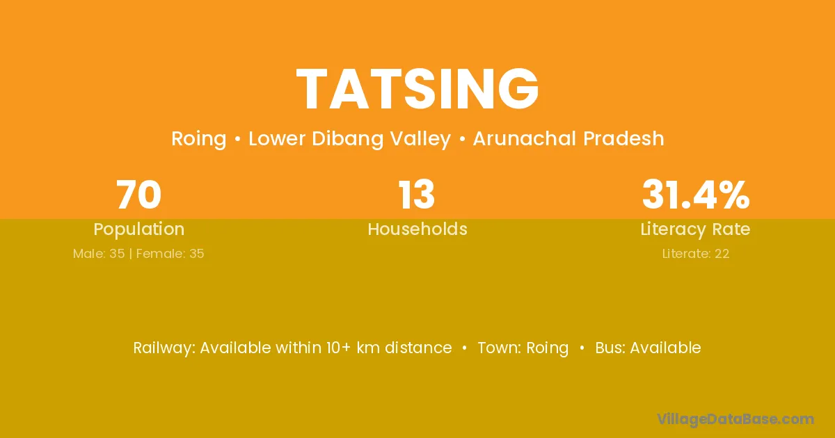 Tatsing village has a total population of 70 people, of which 35 are males and 35 are females.