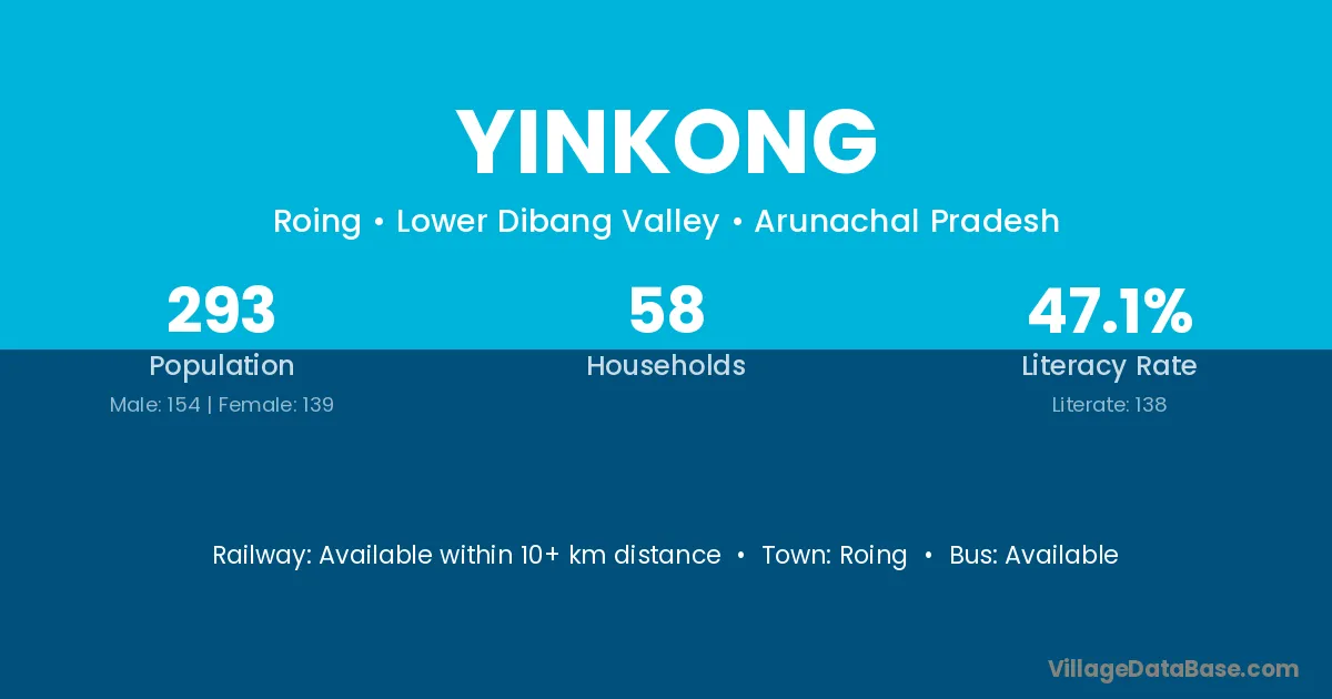 Yinkong village has a total population of 293 people, of which 154 are males and 139 are females.