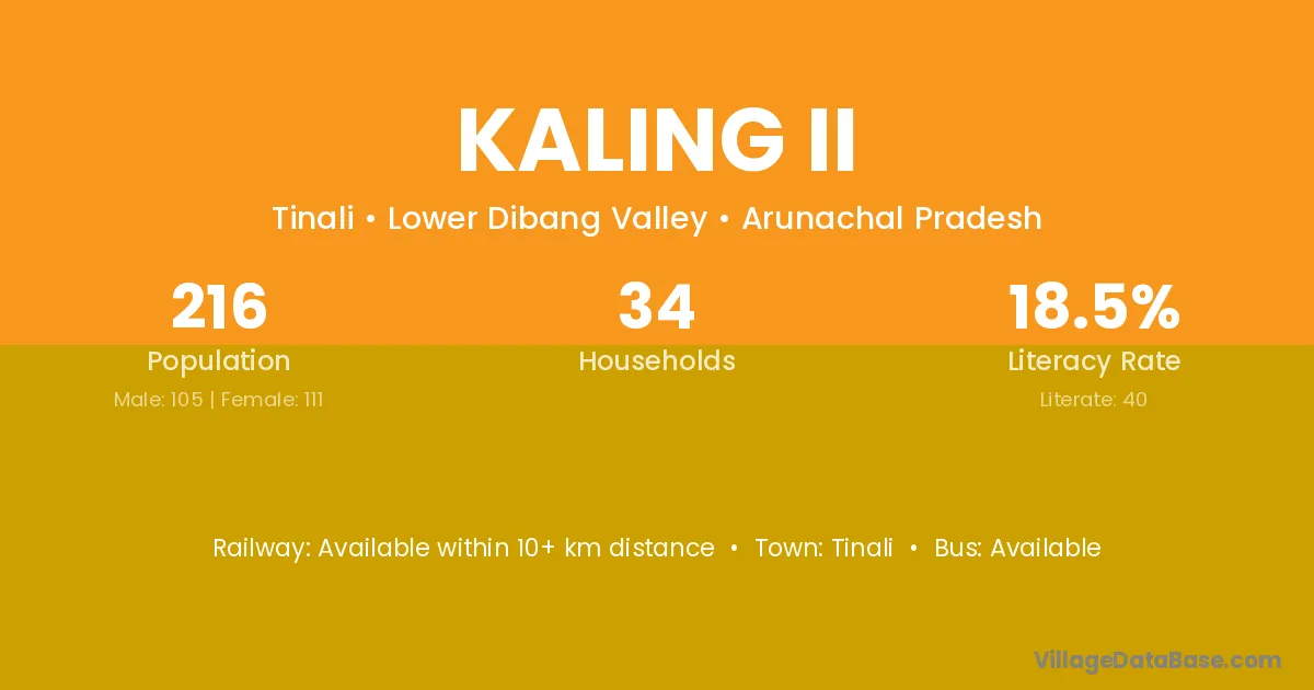 Kaling Ii village has a total population of 216 people, of which 105 are males and 111 are females.