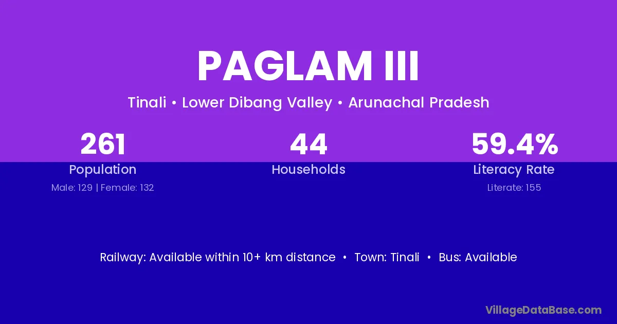 Paglam Iii village has a total population of 261 people, of which 129 are males and 132 are females.