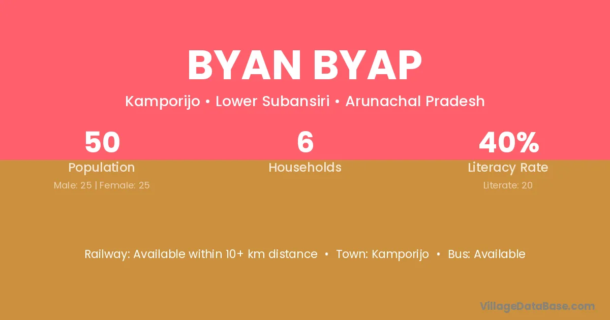 Byan Byap village has a total population of 50 people, of which 25 are males and 25 are females.