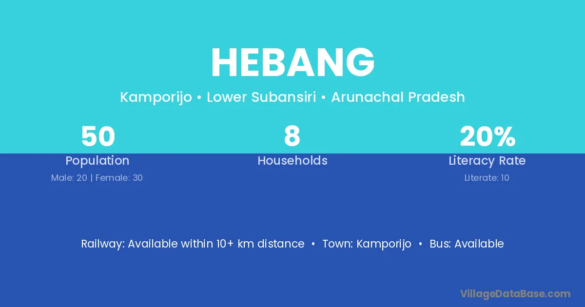 Hebang village has a total population of 50 people, of which 20 are males and 30 are females.