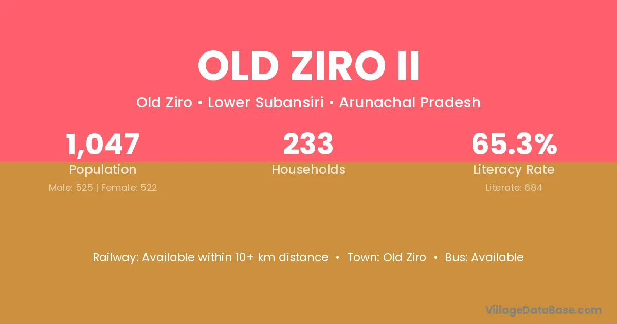 Old Ziro Ii village has a total population of 1,047 people, of which 525 are males and 522 are females.