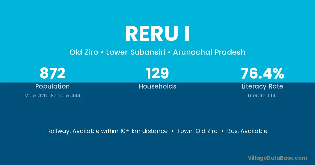 Reru I village has a total population of 872 people, of which 428 are males and 444 are females.
