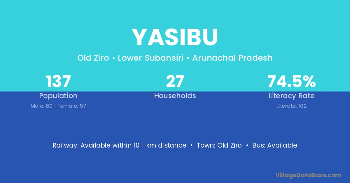 Yasibu village has a total population of 137 people, of which 80 are males and 57 are females.