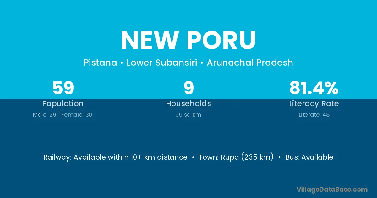 New Poru village has a total population of 59 people, of which 29 are males and 30 are females.