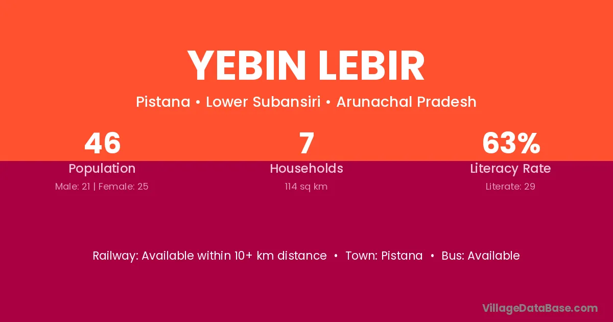 Yebin Lebir village has a total population of 46 people, of which 21 are males and 25 are females.