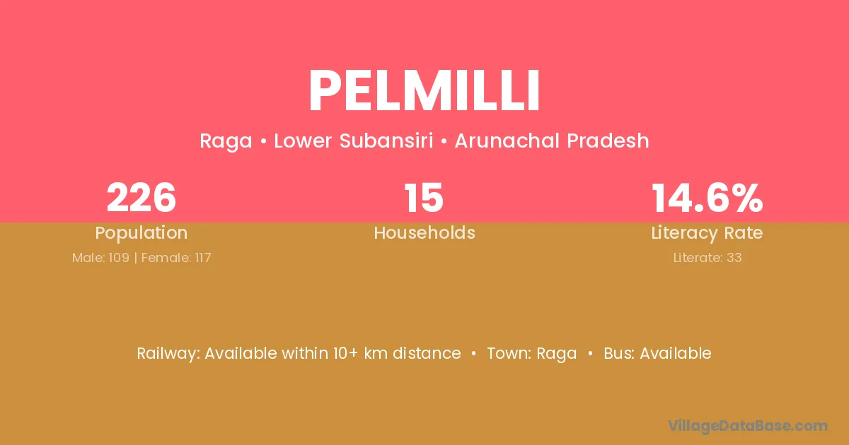 Pelmilli village has a total population of 226 people, of which 109 are males and 117 are females.