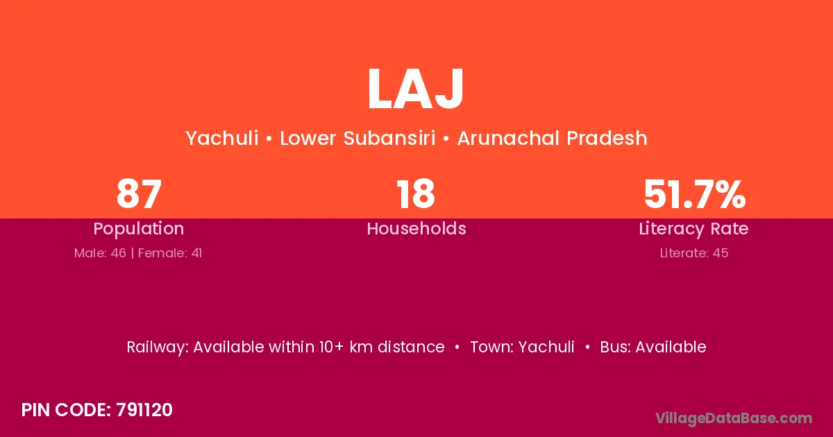 According to Census 2011 information, the village code of Laj village is 791120.