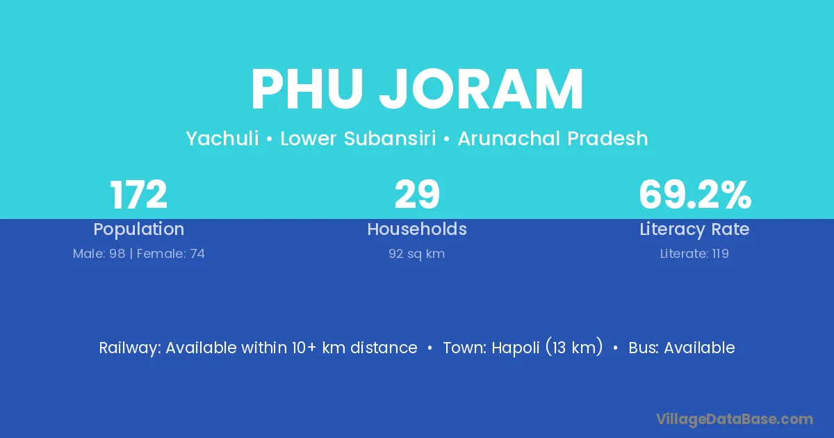 Hapoli (13 km) is the nearest town to Phu Joram village for major economic activities and is located approximately 13 km away.