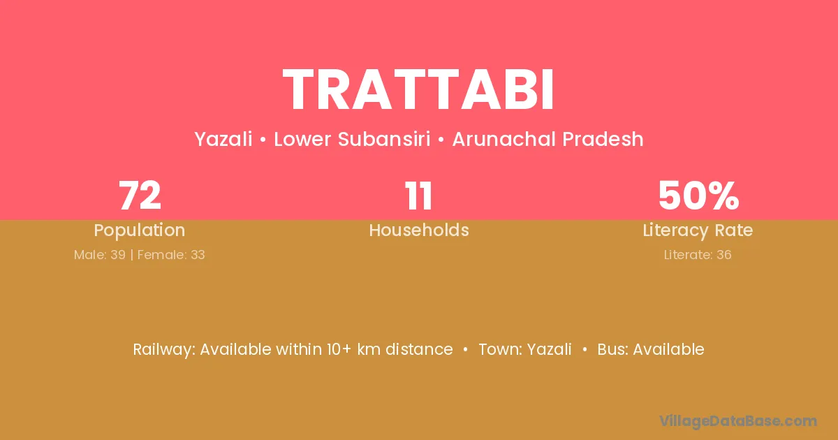 Trattabi village has a total population of 72 people, of which 39 are males and 33 are females.