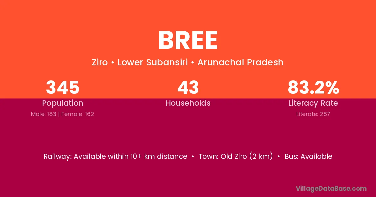 Old Ziro (2 km) is the nearest town to Bree village for major economic activities and is located approximately 2 km away.