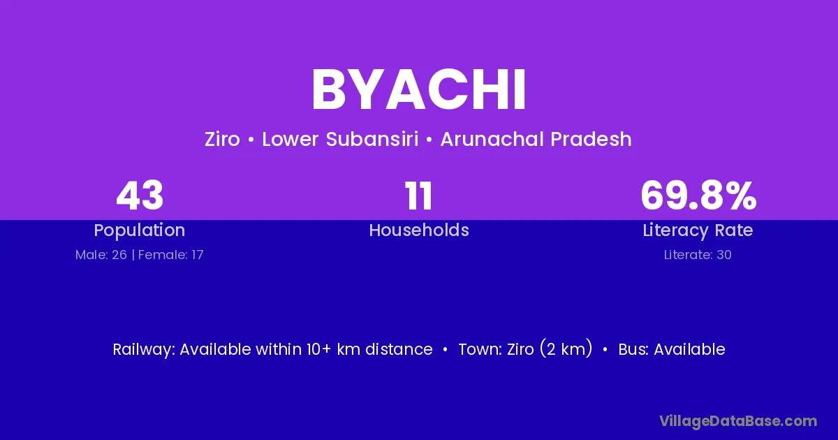Byachi village has a total population of 43 people, of which 26 are males and 17 are females.