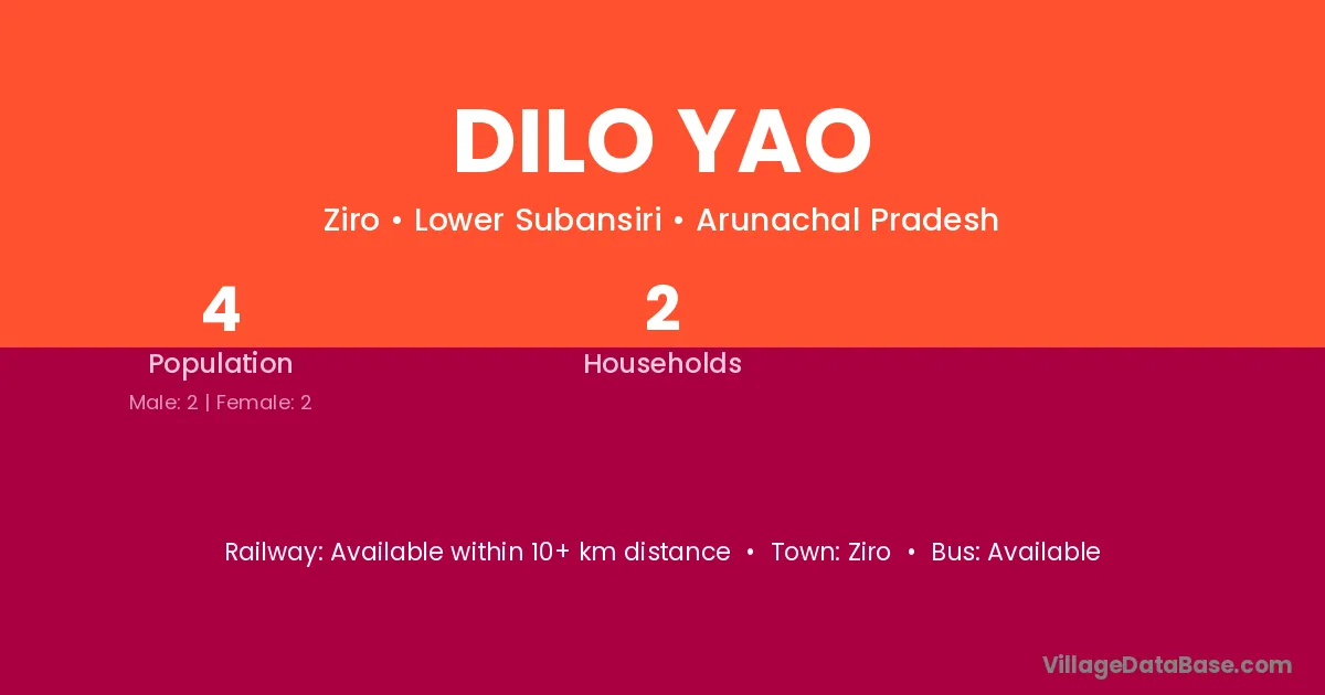 Dilo Yao village has a total population of 4 people, of which 2 are males and 2 are females.