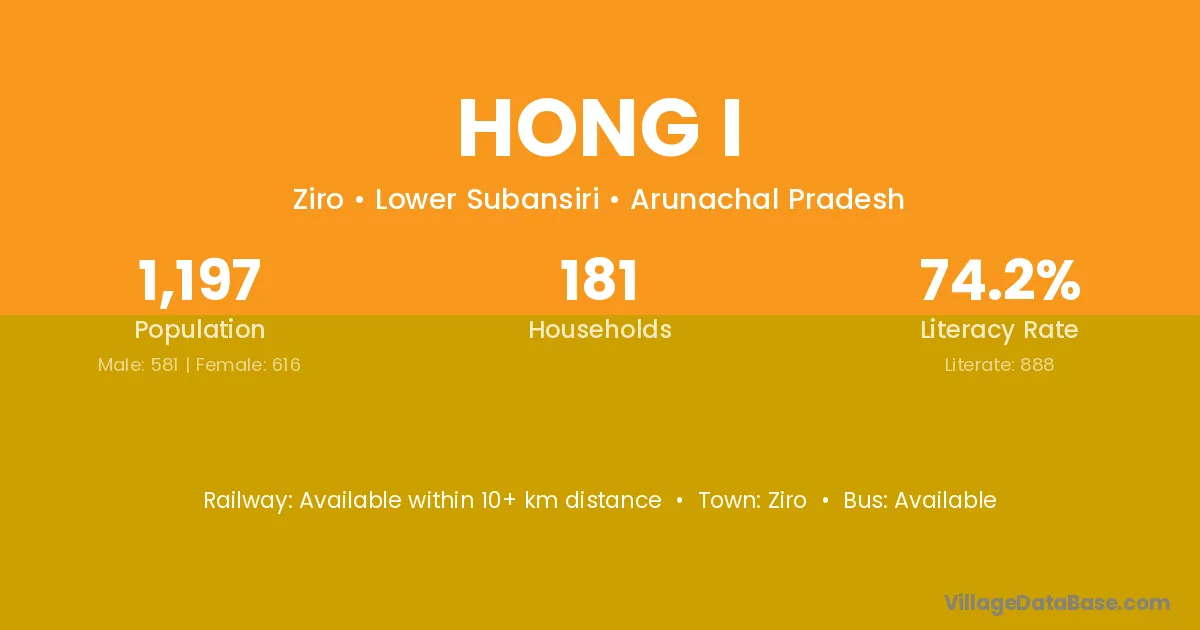 Hong I village has a total population of 1,197 people, of which 581 are males and 616 are females.