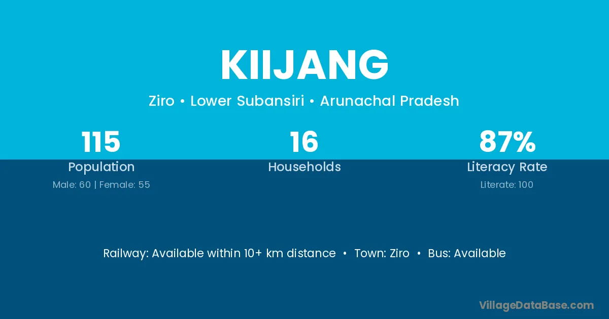 Kiijang village has a total population of 115 people, of which 60 are males and 55 are females.