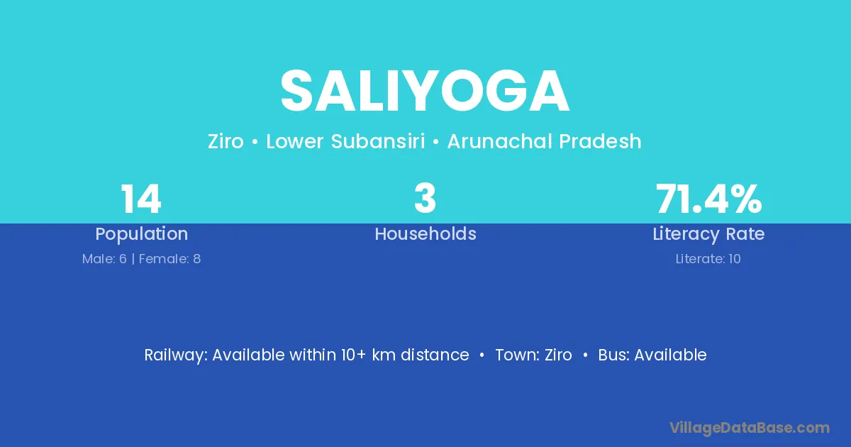 Ziro is the nearest town to Saliyoga village for major economic activities