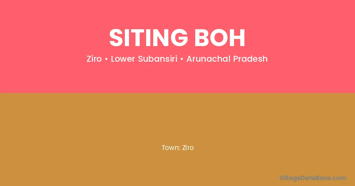 Ziro is the nearest town to Siting Boh village for major economic activities