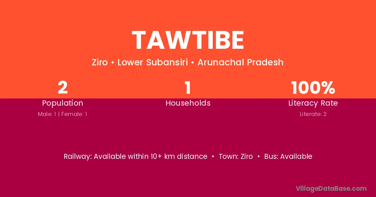 Tawtibe village has a total population of 2 people, of which 1 are males and 1 are females.