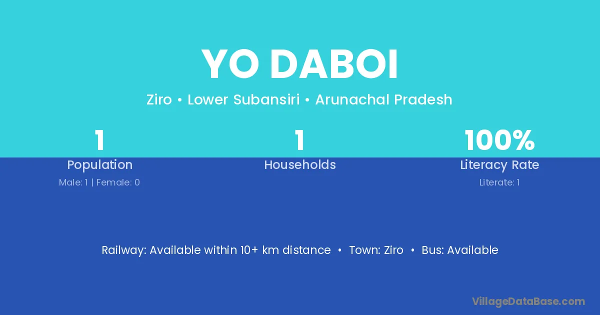 Yo Daboi village has a total population of 1 people, of which 1 are males and 0 are females.