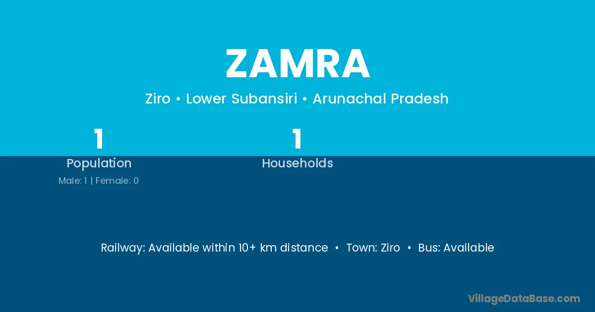 Zamra village has a total population of 1 people, of which 1 are males and 0 are females.