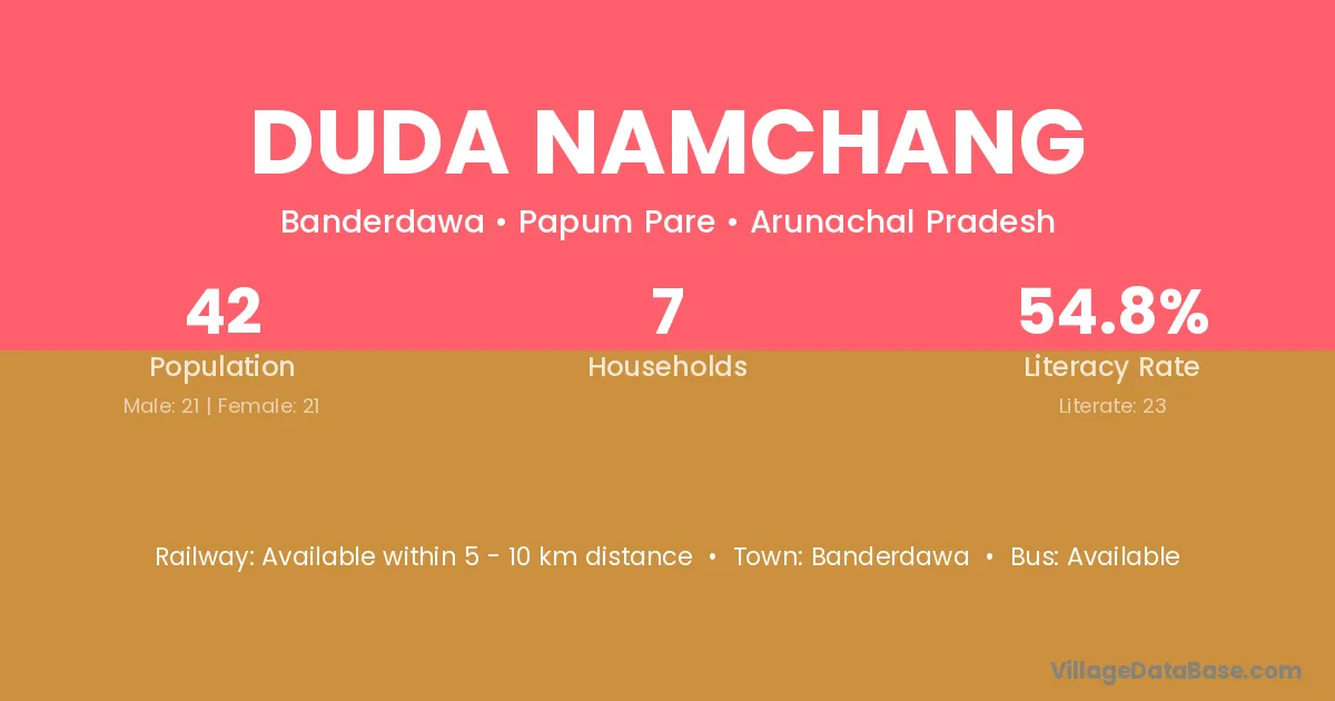 Duda Namchang village has a total population of 42 people, of which 21 are males and 21 are females.