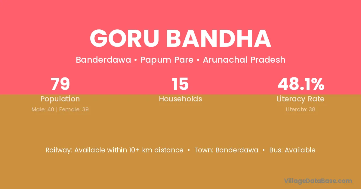 Goru Bandha village has a total population of 79 people, of which 40 are males and 39 are females.