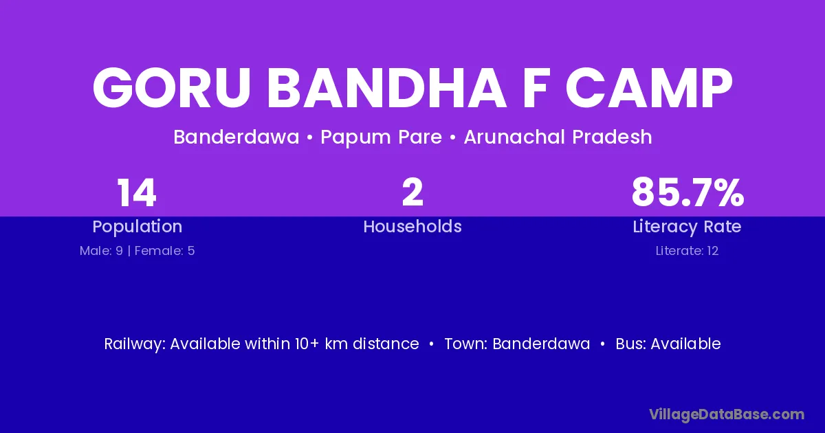 Goru Bandha F Camp village has a total population of 14 people, of which 9 are males and 5 are females.