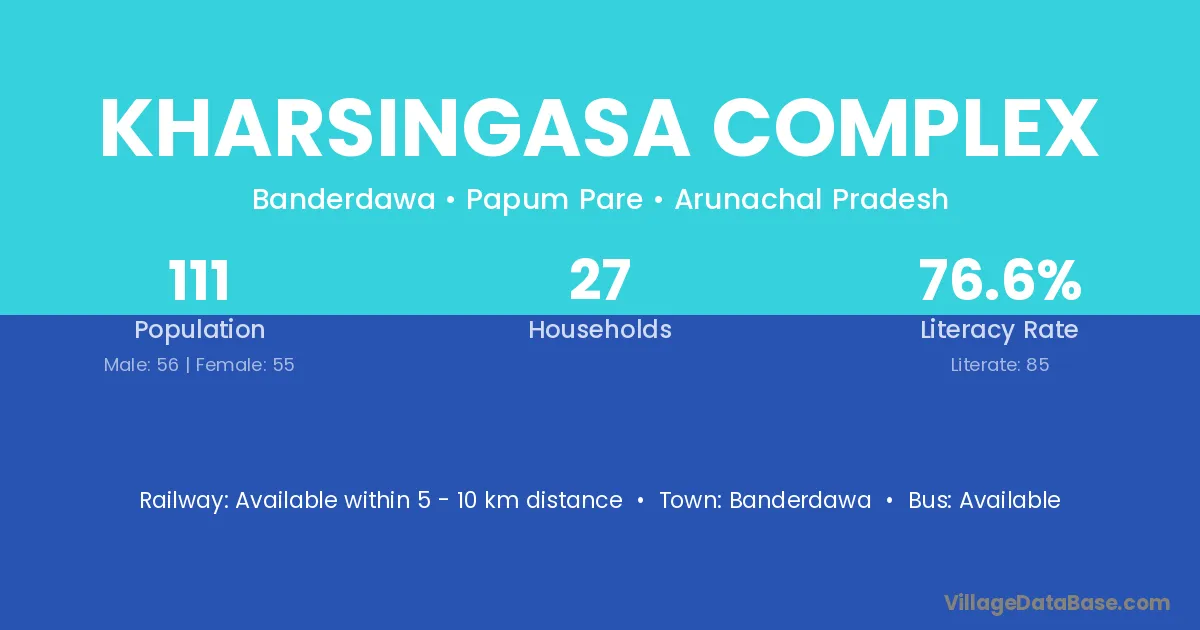 Kharsingasa Complex village has a total population of 111 people, of which 56 are males and 55 are females.