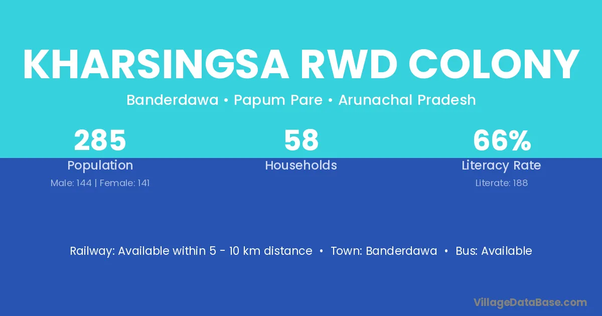 Kharsingsa Rwd Colony village is located in the Banderdawa Circle of the Papum Pare district in Arunachal Pradesh .
