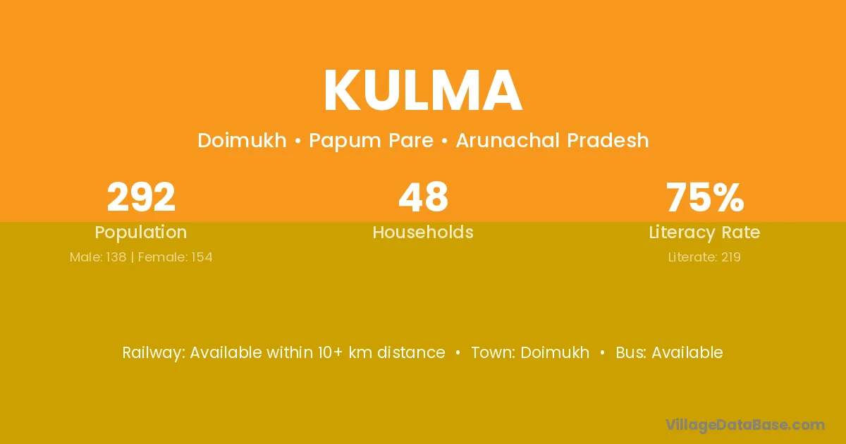 Kulma village has a total population of 292 people, of which 138 are males and 154 are females.