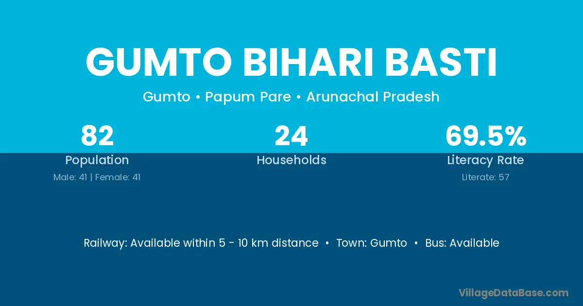 Gumto Bihari Basti village has a total population of 82 people, of which 41 are males and 41 are females.
