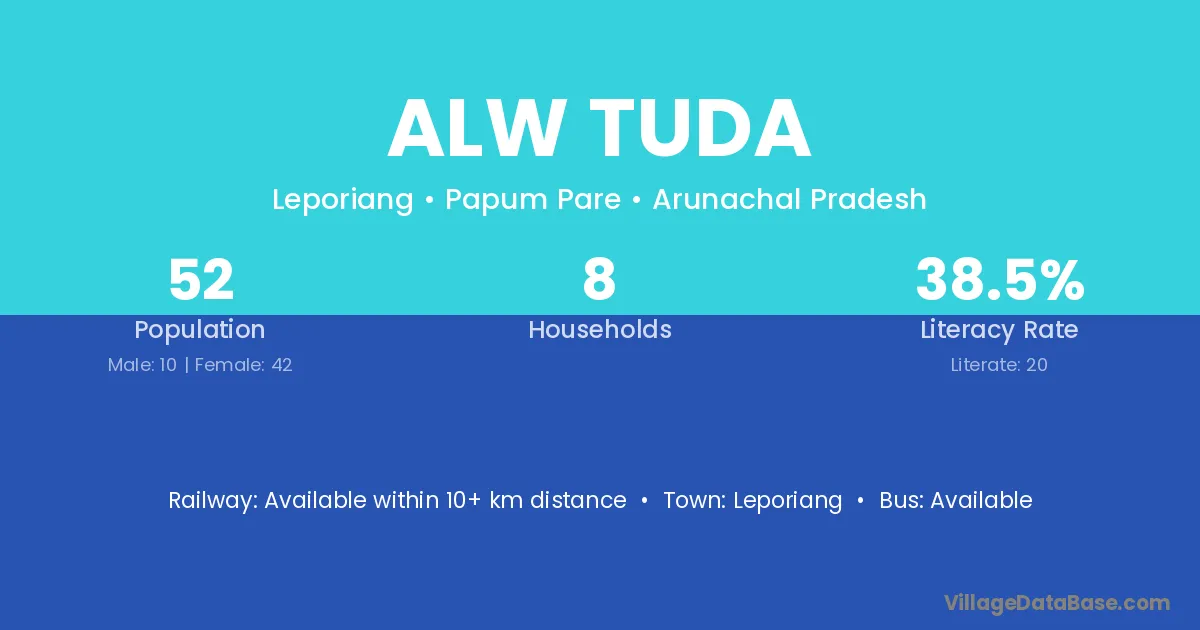 Alw Tuda village has a total population of 52 people, of which 10 are males and 42 are females.