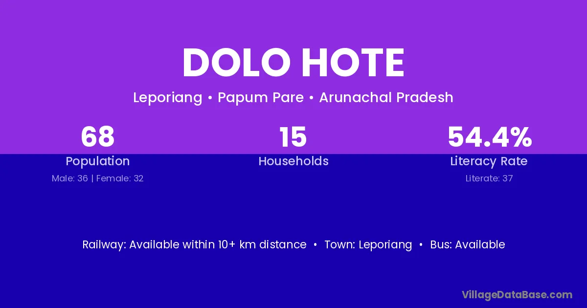 The literacy rate of Dolo Hote village is 54.41%. Male literacy stands at 52.78% and female literacy at 56.25%.