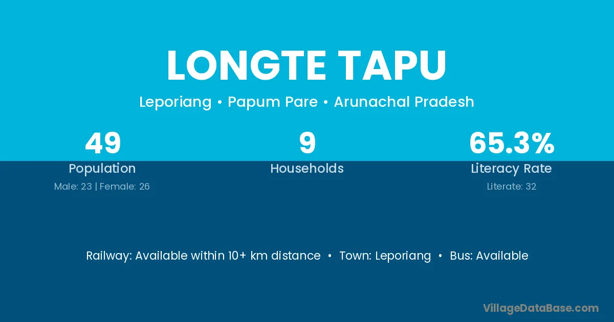 Longte Tapu village has a total population of 49 people, of which 23 are males and 26 are females.