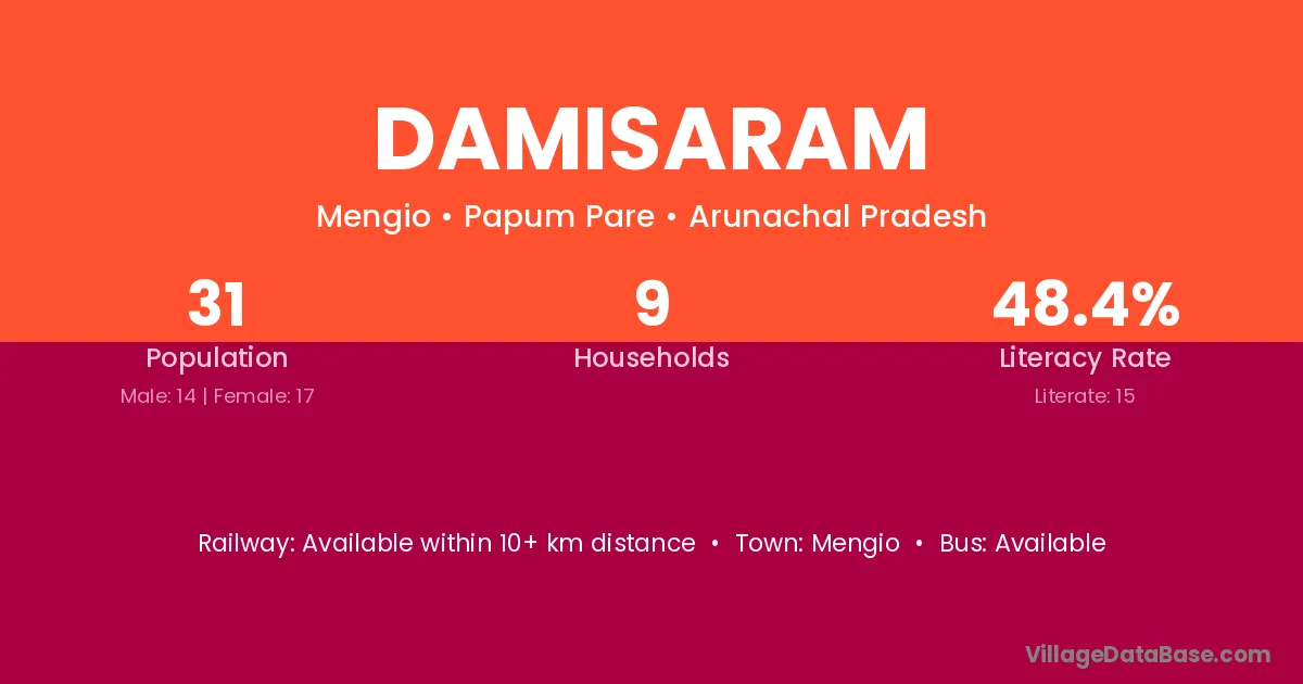 Damisaram village has a total population of 31 people, of which 14 are males and 17 are females.
