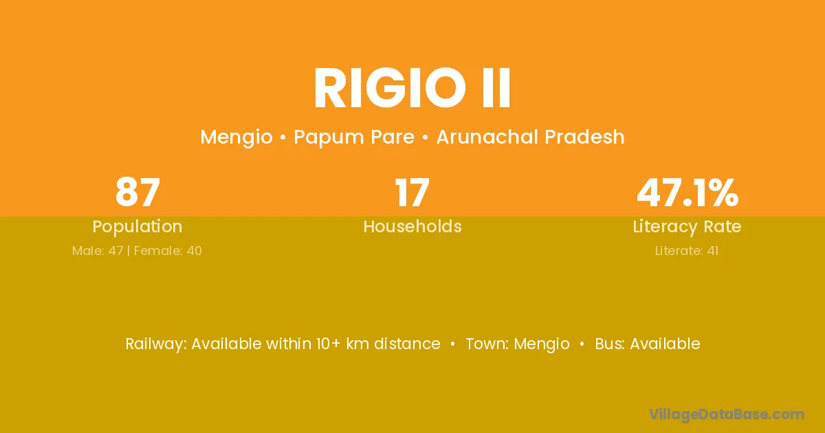 Rigio Ii village has a total population of 87 people, of which 47 are males and 40 are females.