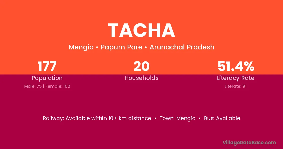 Tacha village has a total population of 177 people, of which 75 are males and 102 are females.